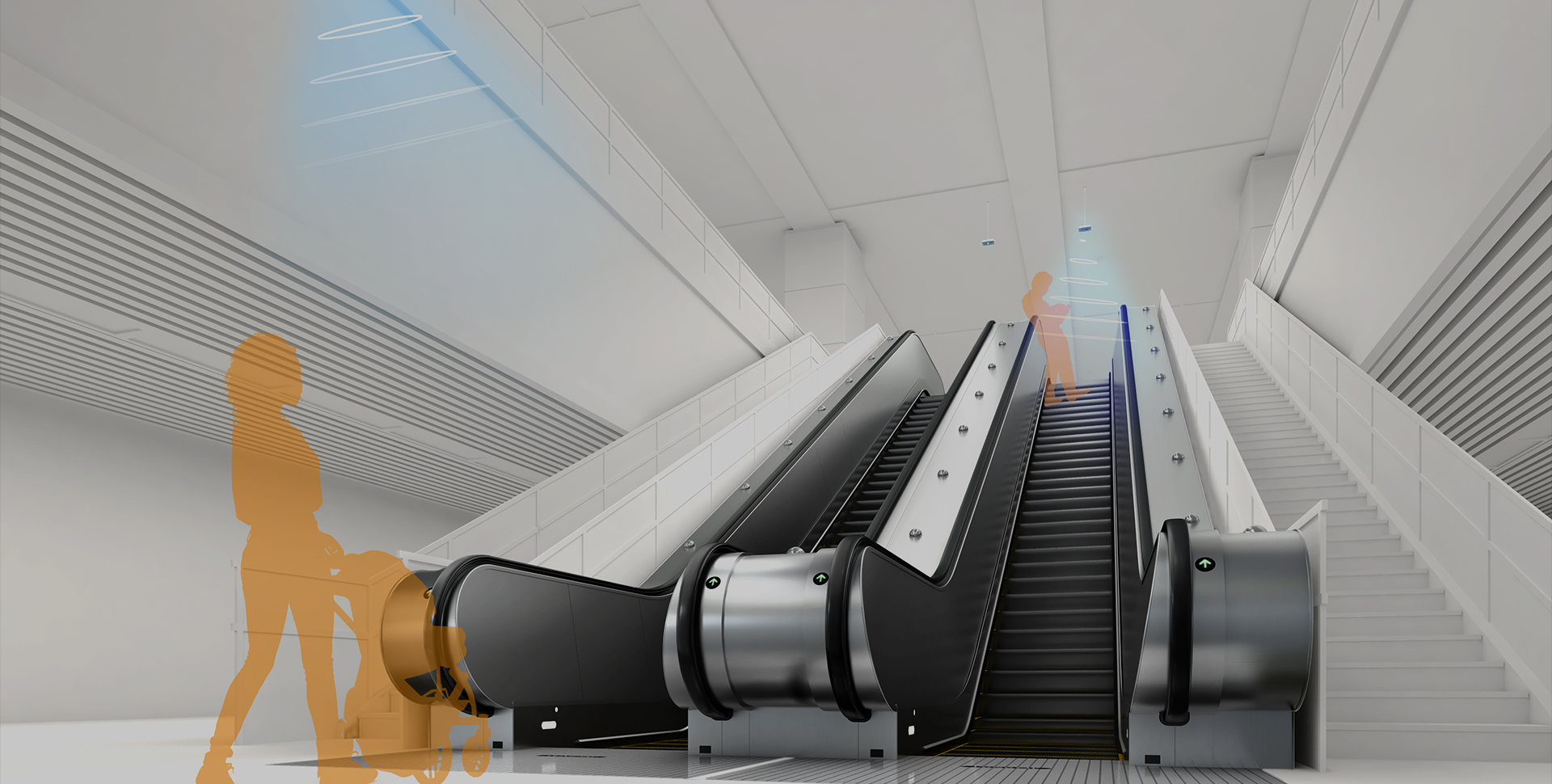 適用于客流量中等,使用頻度低的場合,如機場、人行道天橋、會展中心、規(guī)劃客流少的高鐵/火車站。
